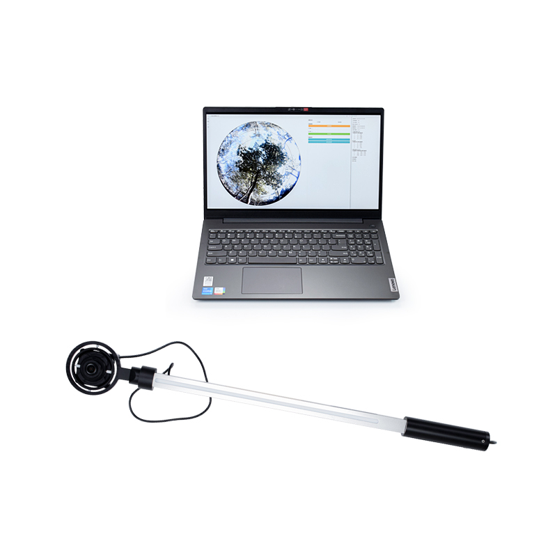 2. fisheye lens can be extended into the canopy: the lens is mounted on the end of the swing arm, due to the small size and with a measuring rod, it can be easily extended horizontally forward or vertically upward to different heights of the canopy, and quickly carry out stratification measurements, and measure the light transmittance rate and the leaf area index of the group of vertical distribution maps;